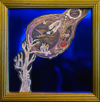 Slightly different than the first HTOP - in this edition the foxy little owl holds and incubates the glassware and dude carries his guitar aloft as the winged vessel accompanies him across the brilliant moon into the lush, velvet night.